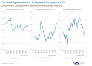 Real pay growth remains weak, particularly in the private sector. Inflation continues to erode the impact of nominal wage increases, with real annual regular pay growth at 0.6% in November 2025 – meaning that workers are only marginally better off than they were a year ago.