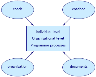 The research also identified numerous perspectives that might be relevant as likely sources of evidence. However, it seems there are four main sources that it is most helpful to consider: documents (eg records of objectives), achievements, coaching contracts; coachees; coaches (whether internal or external); organisation perspective (eg line managers, sponsors, HR, staff).